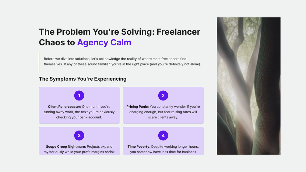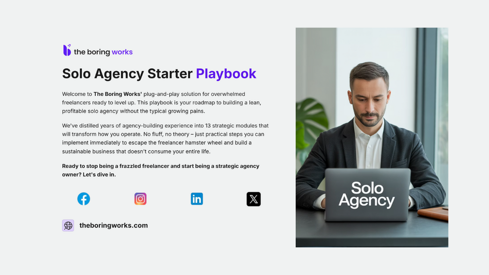 Stop duct-taping your freelance business together and calling it an agency. Grab this playbook today and start building a solo agency that actually runs (and pays) like a business.
